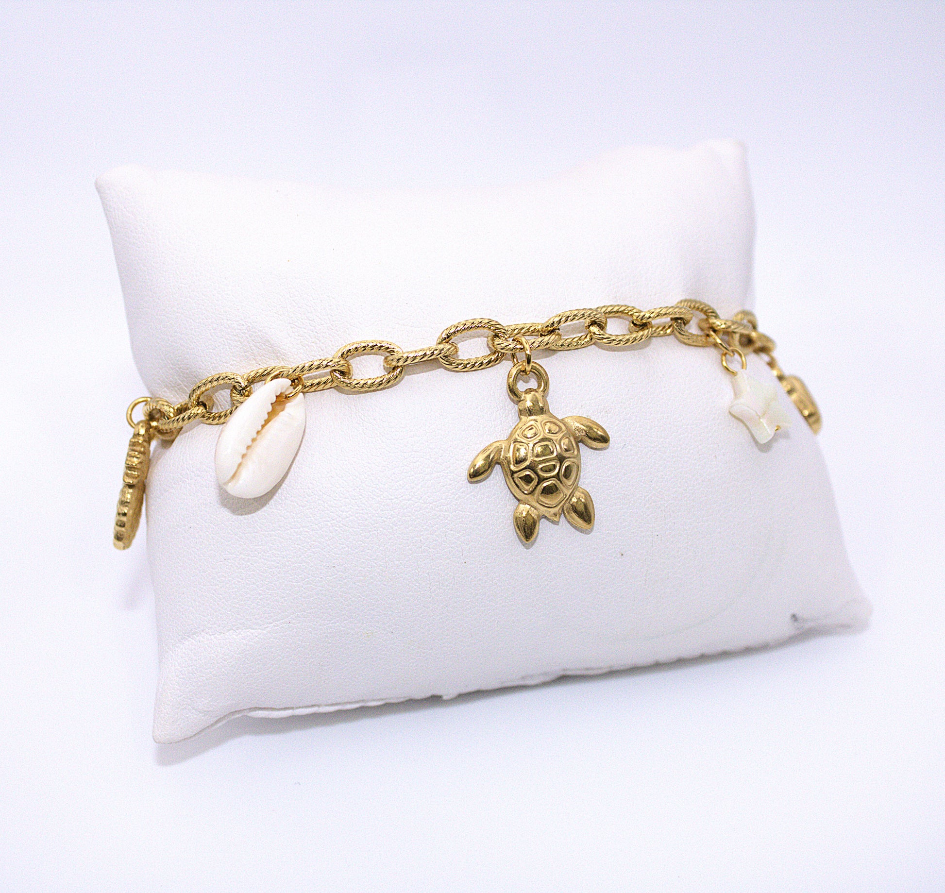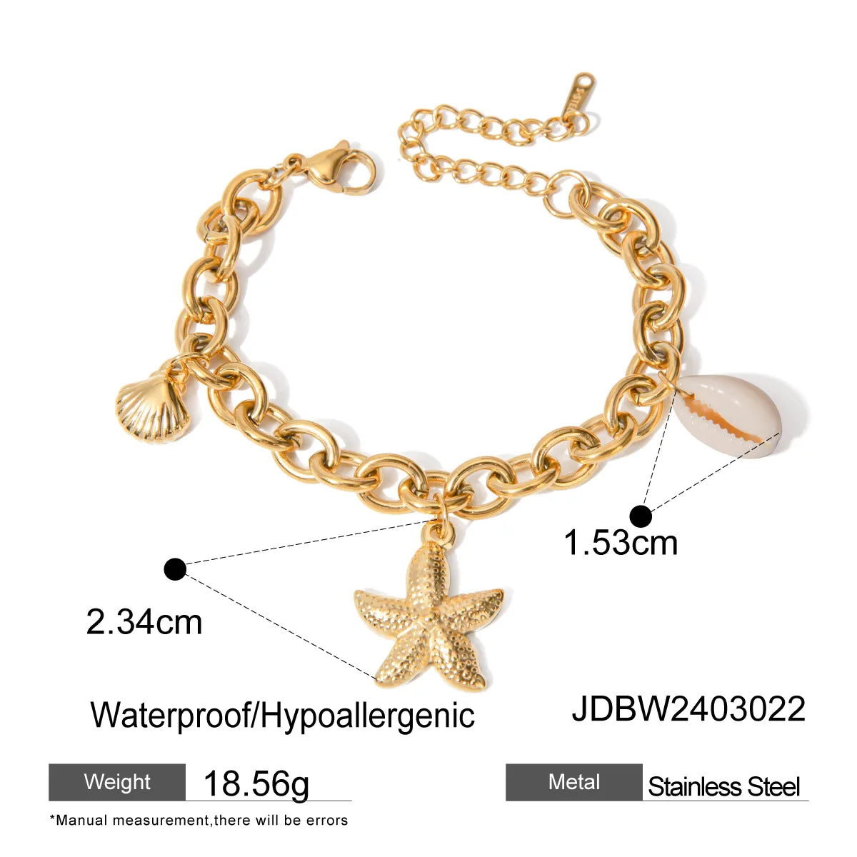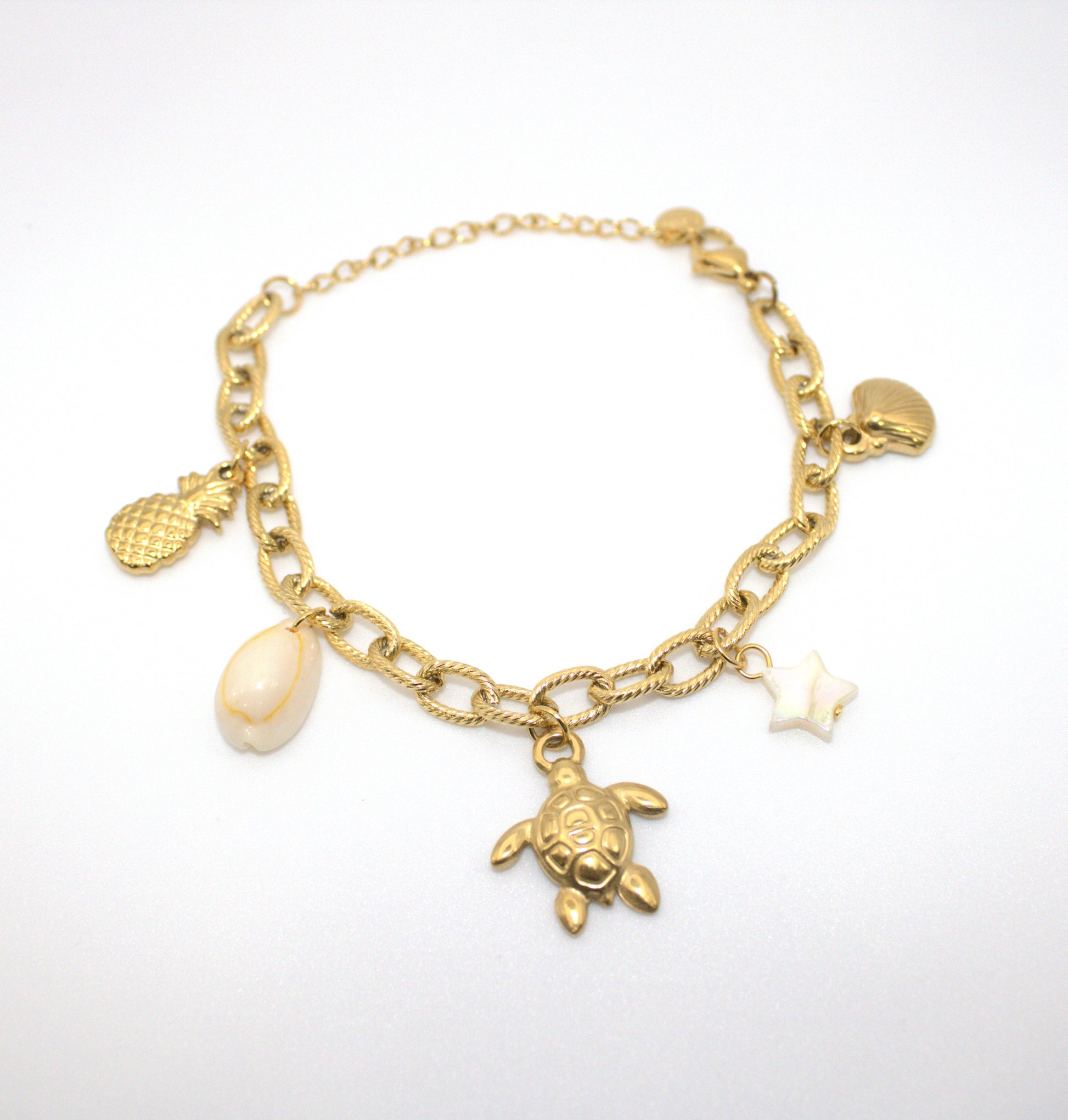 Carry a piece of the ocean with you with the Sea Dream Bracelet. Its golden charms —a starfish, seashell, and natural cowrie— capture the Caribbean summer vibe. Made of stainless steel, it's waterproof and hypoallergenic, ideal for sunny days and warm nights.