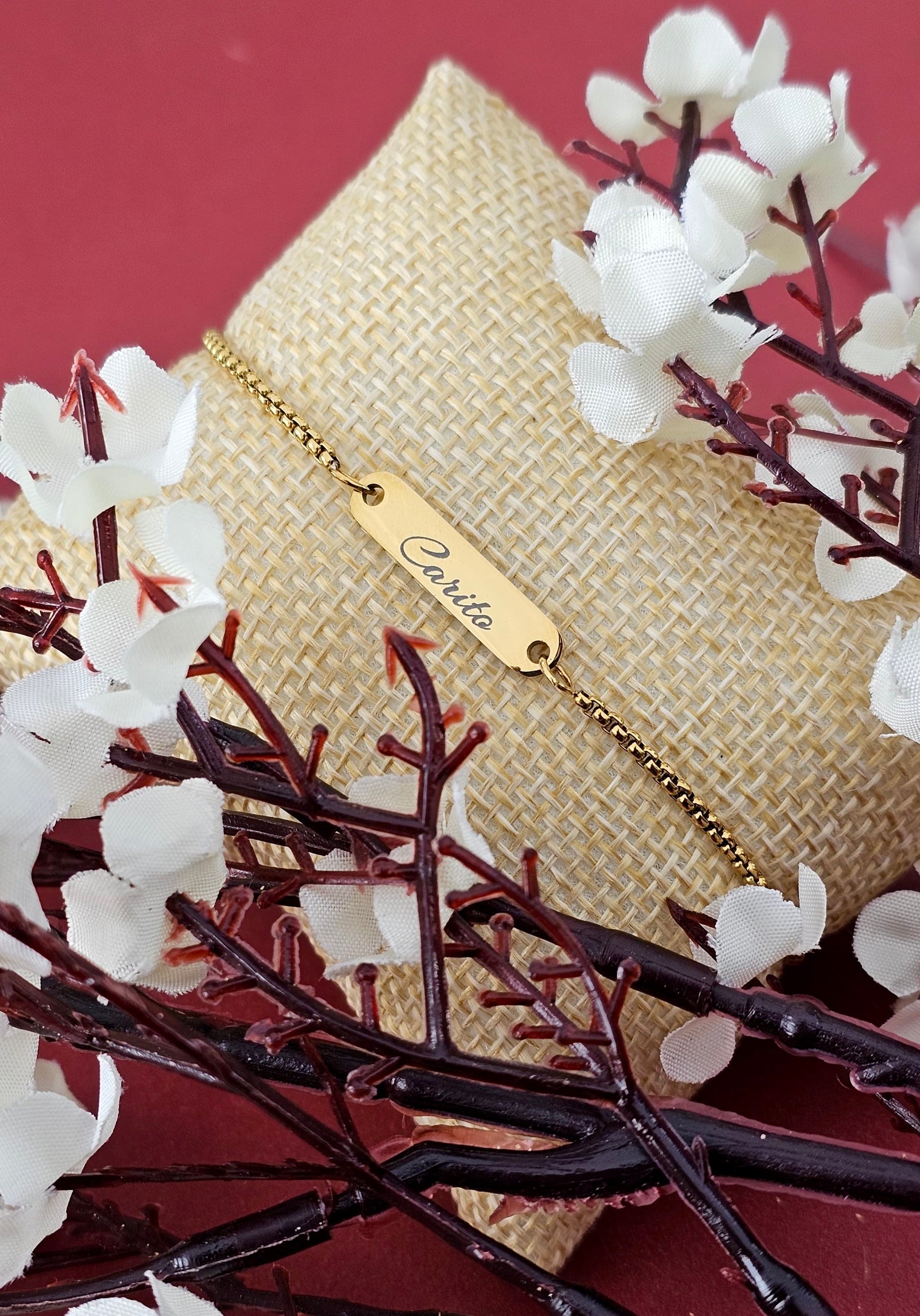 The Adjustable Bar Bracelet combines minimalist elegance with personal significance. Customizable with your chosen engraving, it allows you to carry your story with you, beautifully inscribed and preserved for a lifetime. Its refined design adapts effortlessly, making it a sophisticated piece that is both meaningful and stylish.