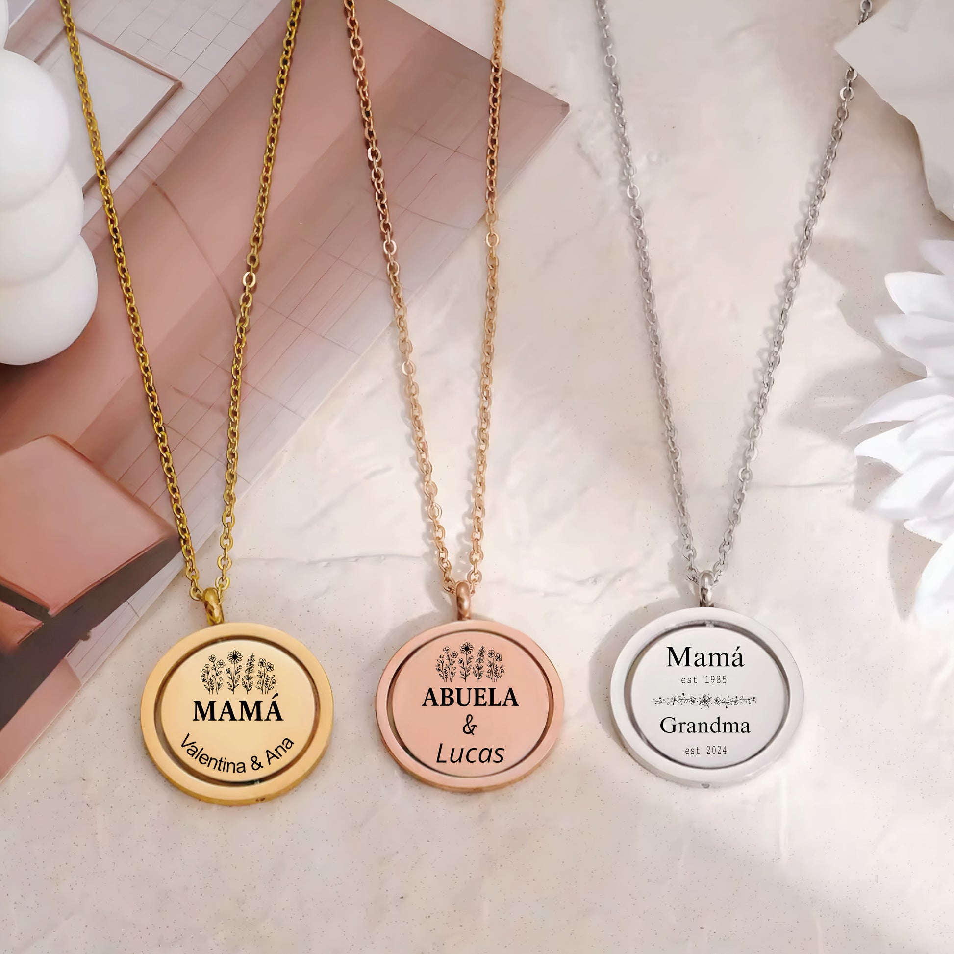 A perfect circle that represents the never-ending love between a mother and her children. This elegant round pendant can be personalized with names, dates, or words that hold special meaning. Made of high-quality stainless steel, it’s waterproof, durable, and designed to shine for years to come — a timeless keepsake that celebrates the bond only a mother can give.
