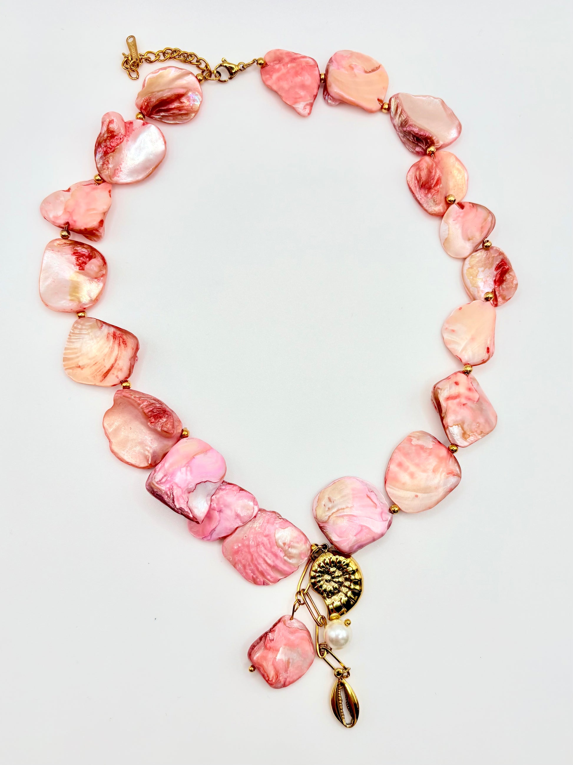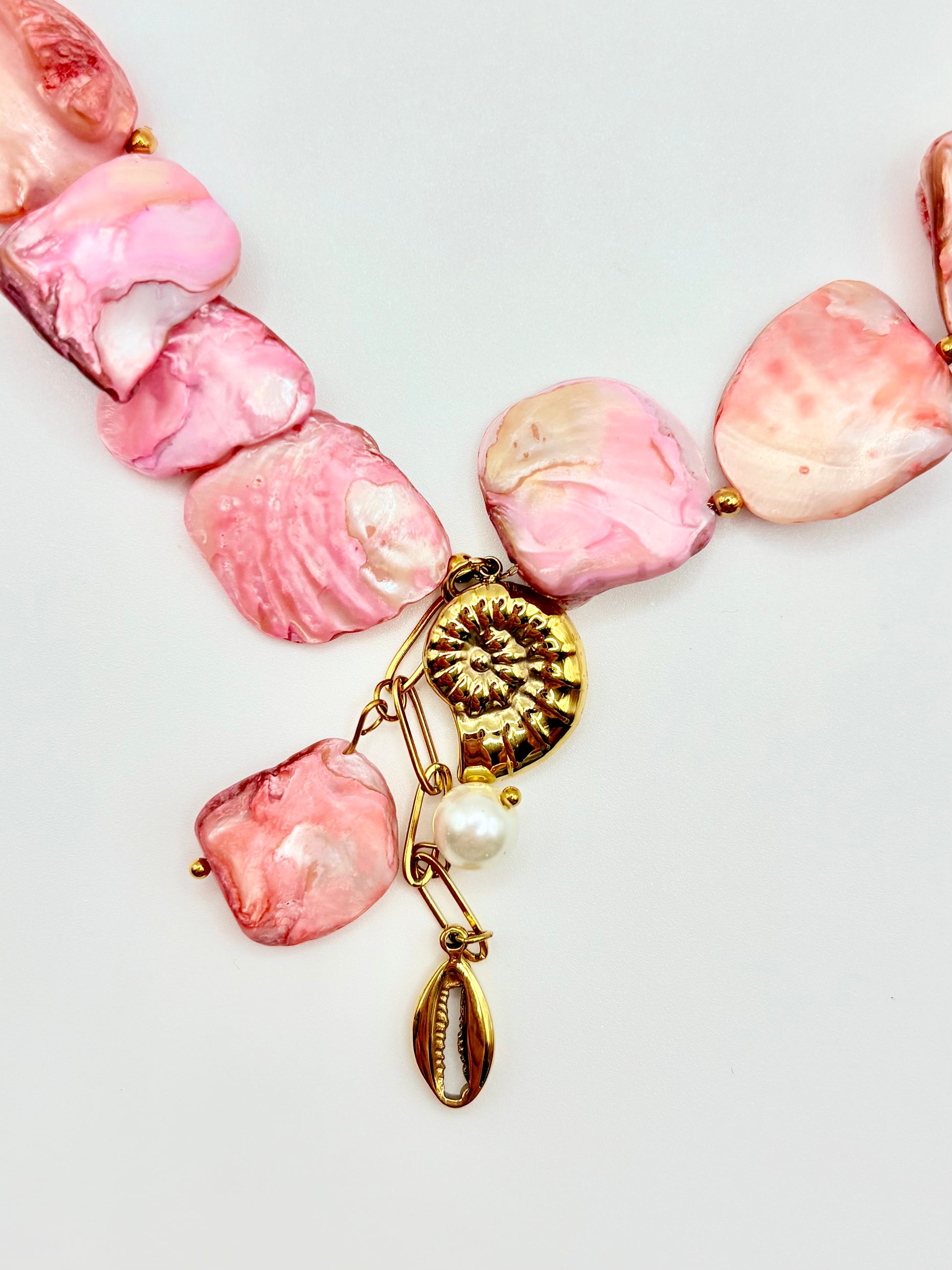 Inspired by the magic of the ocean at sunset, the Ola Dorada necklace blends shells and golden charms in 316L stainless steel, creating a jewel with a tropical soul. Perfect for women who shine from within.