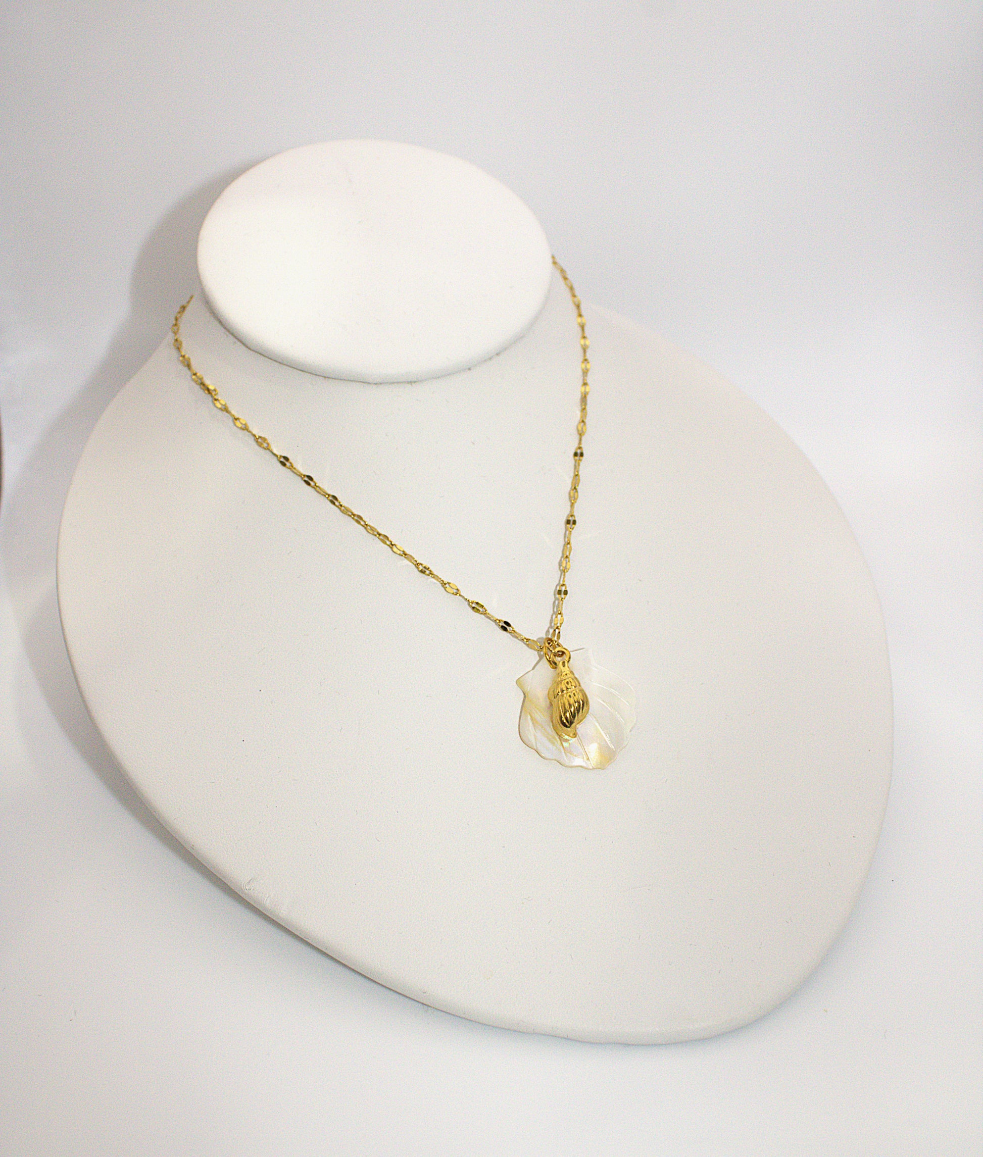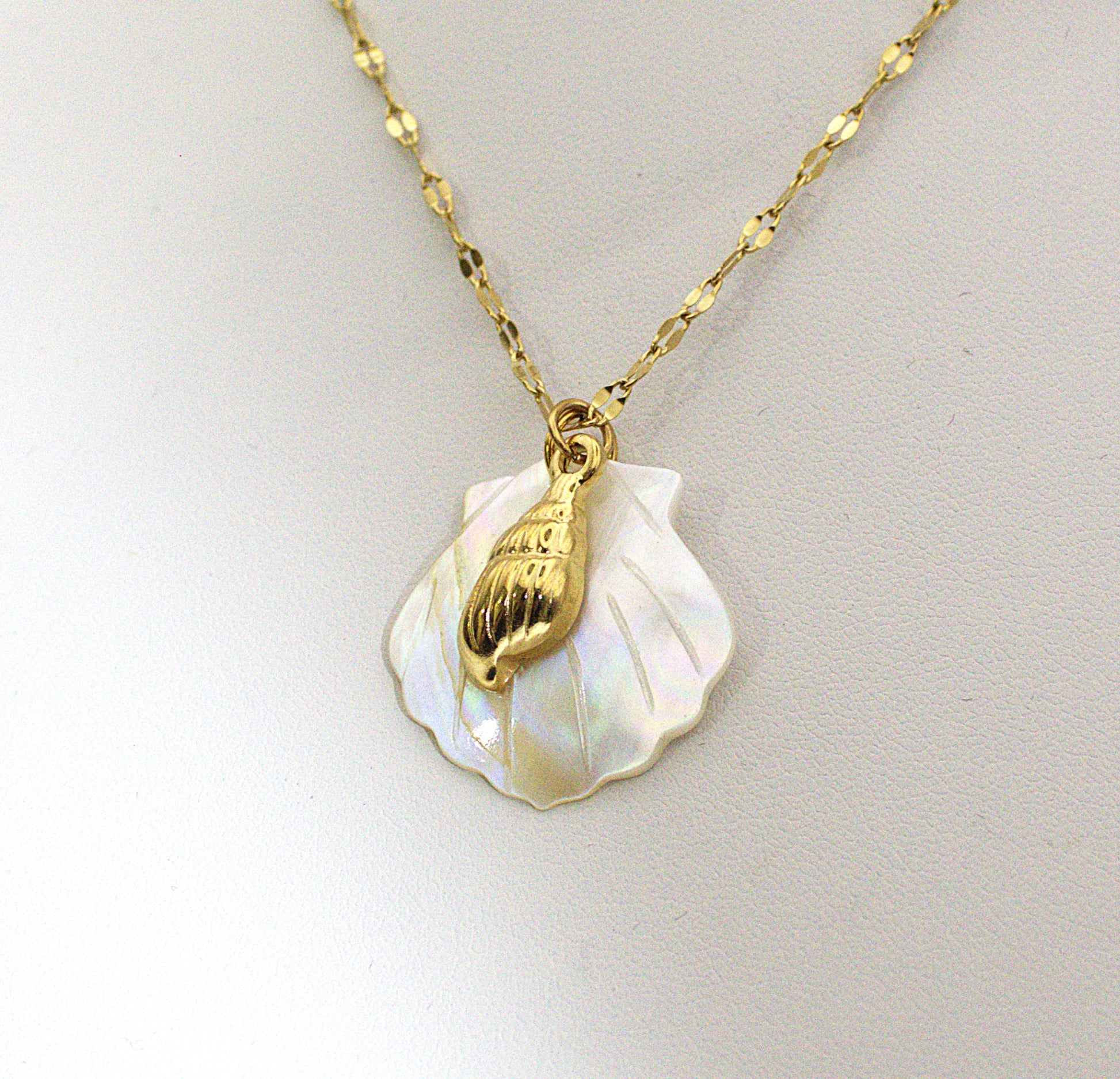 El collar Susurro del Mar captura la suavidad de las olas y el encanto del océano en cada detalle. Con una concha blanca perlada y un colgante de caracola dorada, esta pieza está hecha de acero inoxidable chapado en oro , hipoalergénica, impermeable y perfecta para un look veraniego fresco y natural.